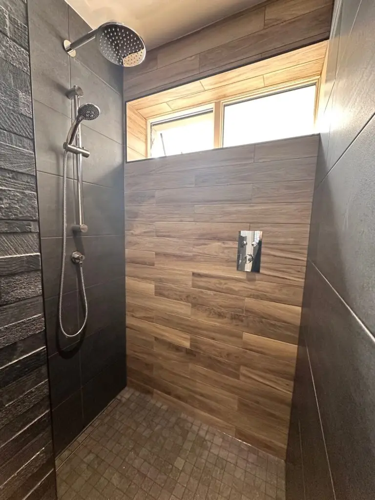 This bathroom combines the perfect blend of rustic and contemporary elements, creating a tranquil, smart, and stylish retreat.